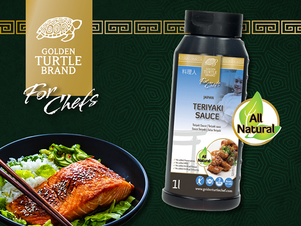 Golden Turtle for Chefs Teriyaki Saus – 1L Deze rijke, kant-en-klare Teriyakisaus combineert sojasaus, mirin en specerijen tot een perfect uitgebalanceerde smaak. Ideaal voor marineren, wokken en grillen. Voor een consistente kwaliteit in iedere professionele keuken.