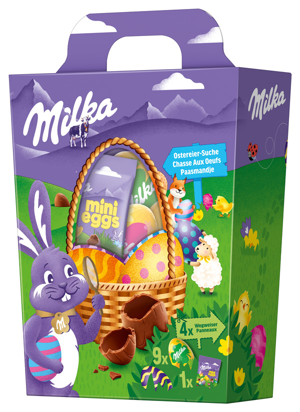 Ingrediënten: Suiker, cacaoboter, cacaomassa, magere MELKPOEDER, weipoeder (van MELK), MELKVET, emulgator (SOJALECITHINEN), HAZELNOOTPASTA, gemodificeerd zetmeel, aroma's, maltodextrine, kleurstoffen (anthocyanen, bietenrood, carotenen, paprika-extract). KAN BEVATTEN: ANDERE NOTEN.
