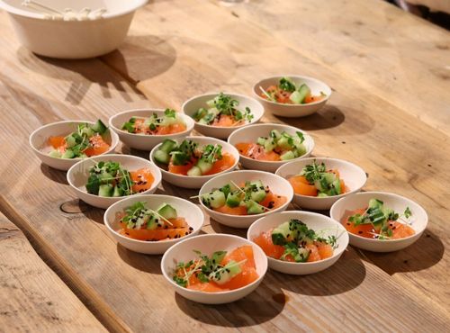 Mini boules de mozzarella avec raisins blancs grillés, finition aux épices dukkah, fruits secs, graines et herbes