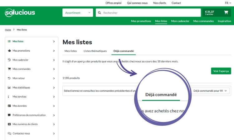 1. Accédez à « Déjà commandé » via « Mes listes ».