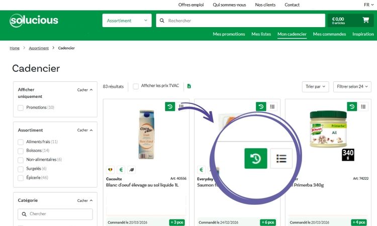 Vous perdez du temps à rechercher sans cesse les mêmes produits ? Avec “Mon cadencier”, retrouvez tout ce que vous avez déjà acheté dans un seul aperçu. Recommandez ainsi plus rapidement, sans hésiter.