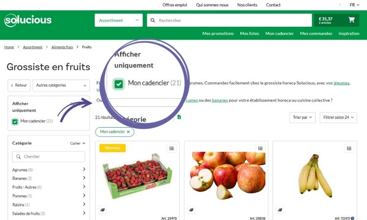 2. Retrouvez vos produits en faisant défiler ou en utilisant les filtres.