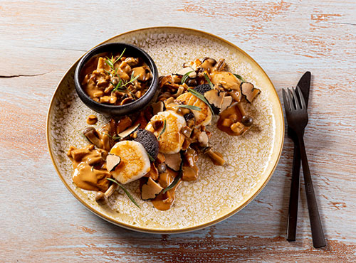 Remplacez le boudin noir et les noix de Saint-Jacques par des raviolis aux champignons-truffe (121967).