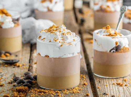 Terminez par des spéculoos émiettés, du chocolat en pépites et/ou des grains de café et une généreuse cuillerée de crème fouettée végétale.