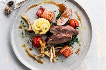 De krachtige en kruidige stijl van deze Corbières ondersteunt perfect het volle, aromatische vlees van hert. De stevige structuur en rijpe tannines brengen harmonie in combinatie met wildgerechten.