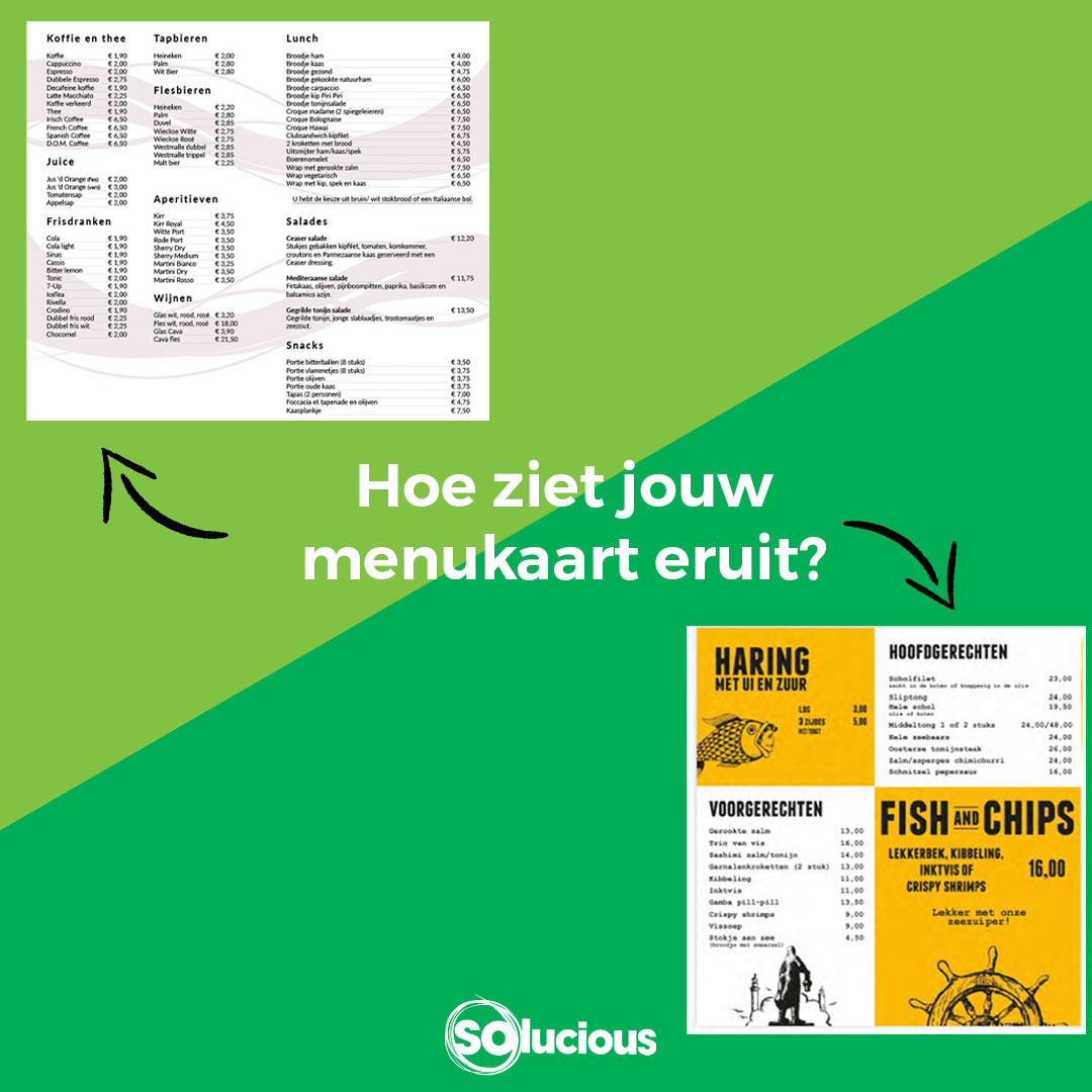 - haal eurotekens weg. Zet de prijzen in hetzelfde lettertype als je gerechten, en iets kleiner.