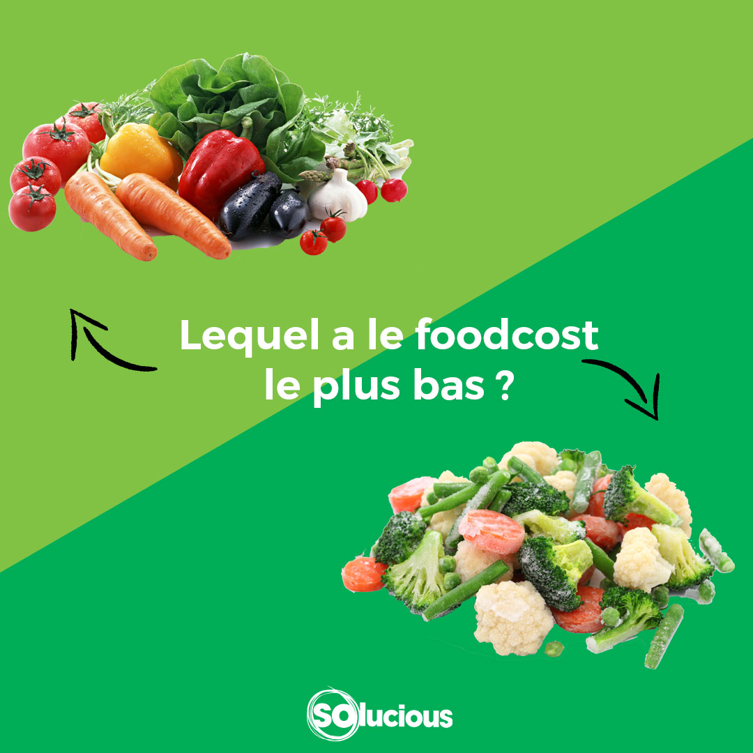Mélange de légumes surgelés : ± 1,5 € par portion. Mélange de légumes frais : ± 2,5 €.