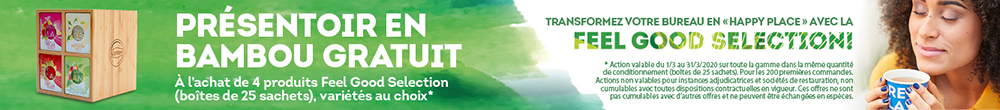 Des collaborateurs heureux sont des collaborateurs productifs ! Créez un environnement de travail épanouissant avec un thé adapté à chaque moment de la journée : Energise au réveil, Balance tout au long de la journée, Refresh pour un coup de fouet et Relax pour terminer la journée en douceur. De quoi offrir à tout moment un sentiment de bien-être à vos travailleurs !
