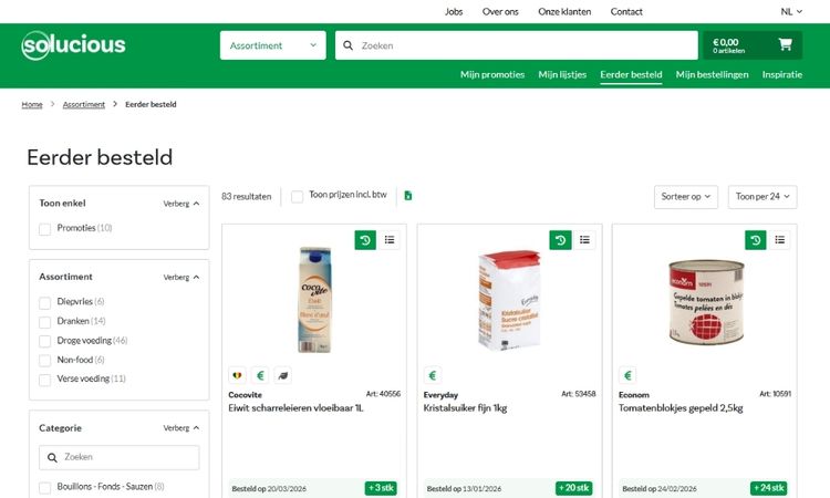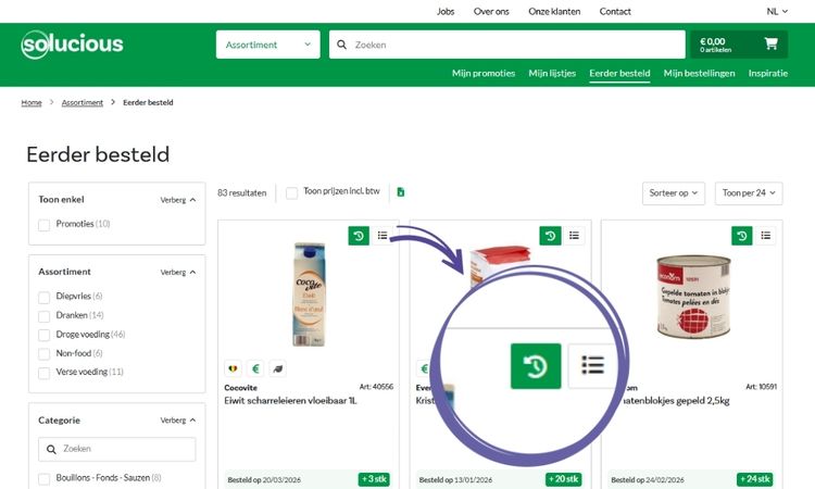 3. Je ziet nu enkel nog de producten die je al eerder bestelde.