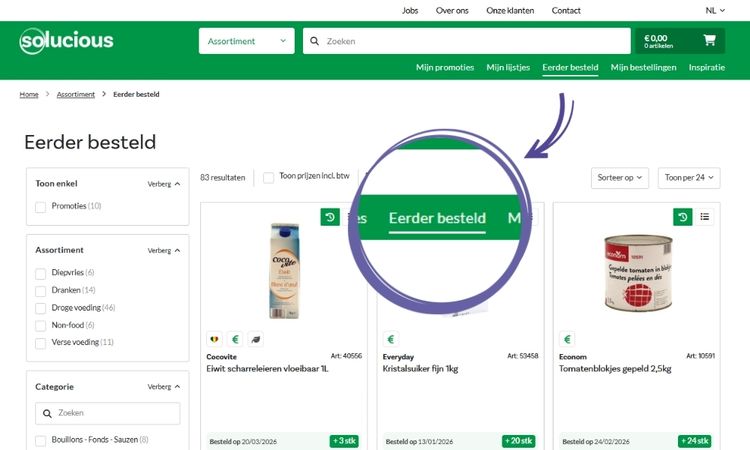 1. Ga naar ‘eerder besteld’ in de hoofdnavigatie.